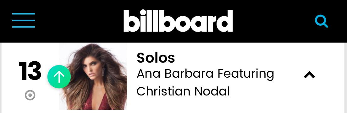 Los Angeles, CA 19 de Marzo 2019- La reina de la música mexicana, Ana Bárbara , está arrasando en los chats de música regional siendo la única mujer en los primeros puestos de popularidad con su tema “ Solos” junto a Christian Nodal .